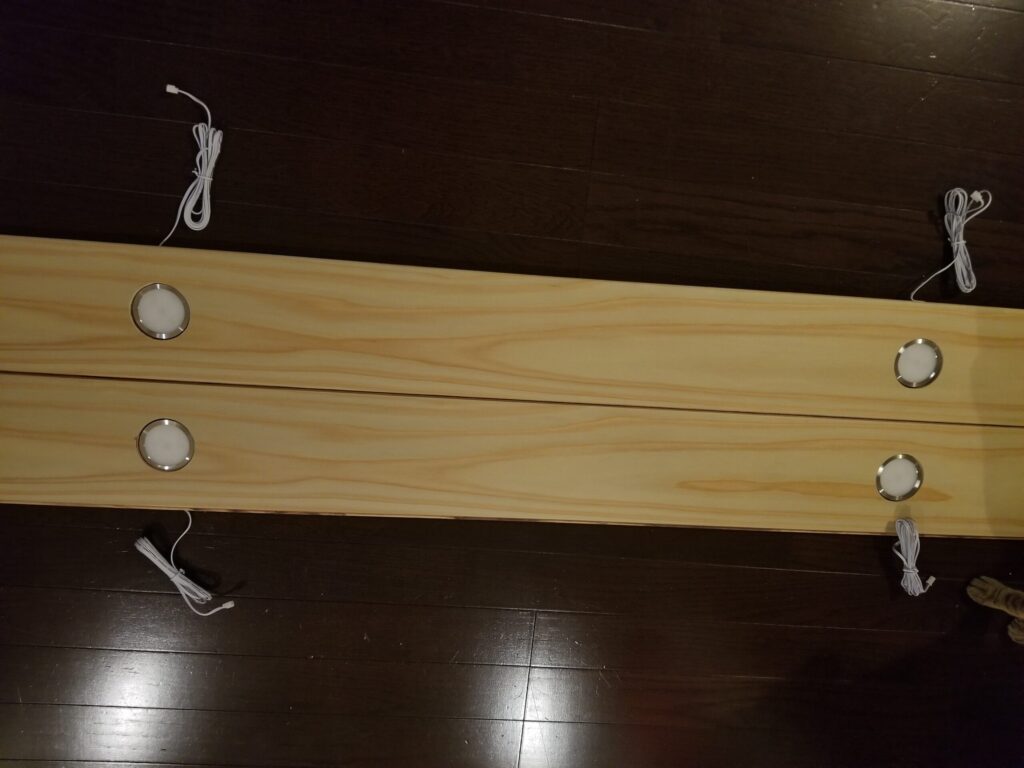 こんな感じでダウンライトを6個取り付けて車両に取り付けていきます。