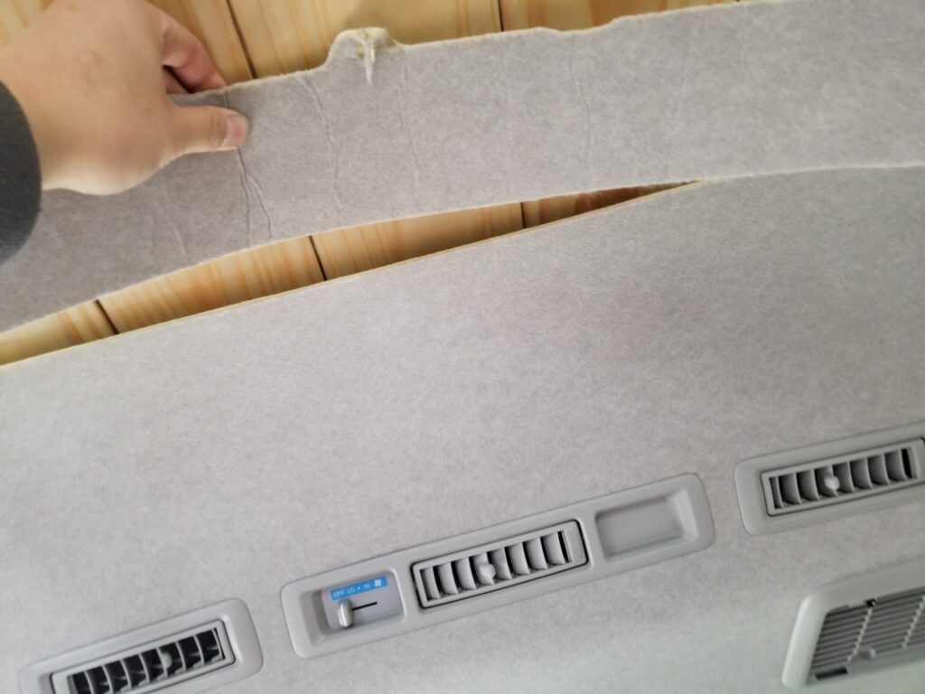 フロントのルーフトリムが歪な形をしているので羽目板にあわせて不要な部分をカットしました。カッターで簡単に切れます。