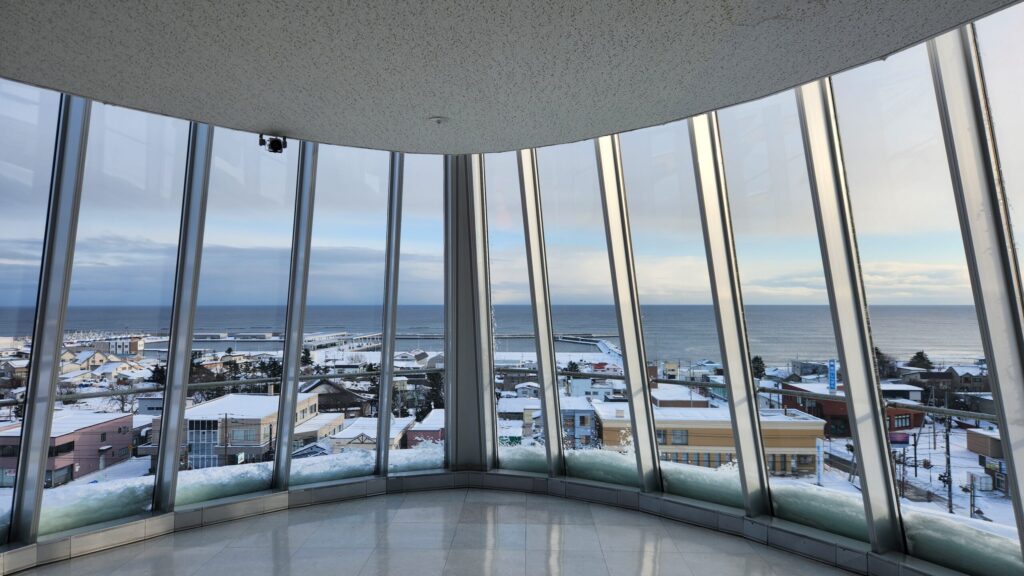 道の駅の中にある展望台に行ってみるとオホーツク海と雄武町を一望できました。